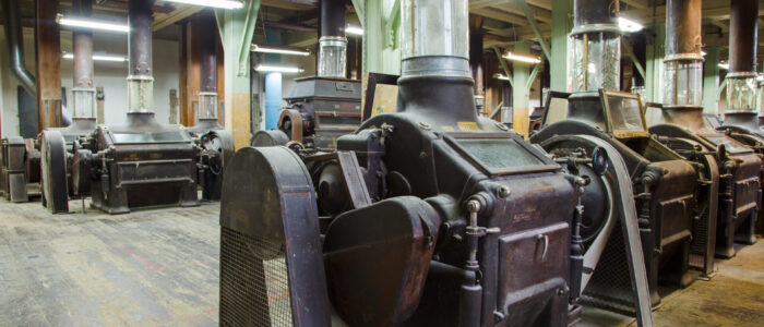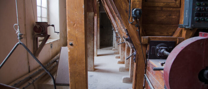 The mill was established in the 1840s. It was built and operated until World War II by members of the Hilbert family. In the 1930s, the Mill was expanded and significantly modernized. It was equipped with electric drive and was one of the largest of its kind in Lower Silesia. After World War II, for the first 10 years, it was managed by the Red Army, and then used by various state enterprises. Without modernization and significant changes in equipment, it operated until the end of 2016. It has been preserved fully complete, illustrating the level of milling technology development from the 1930s.